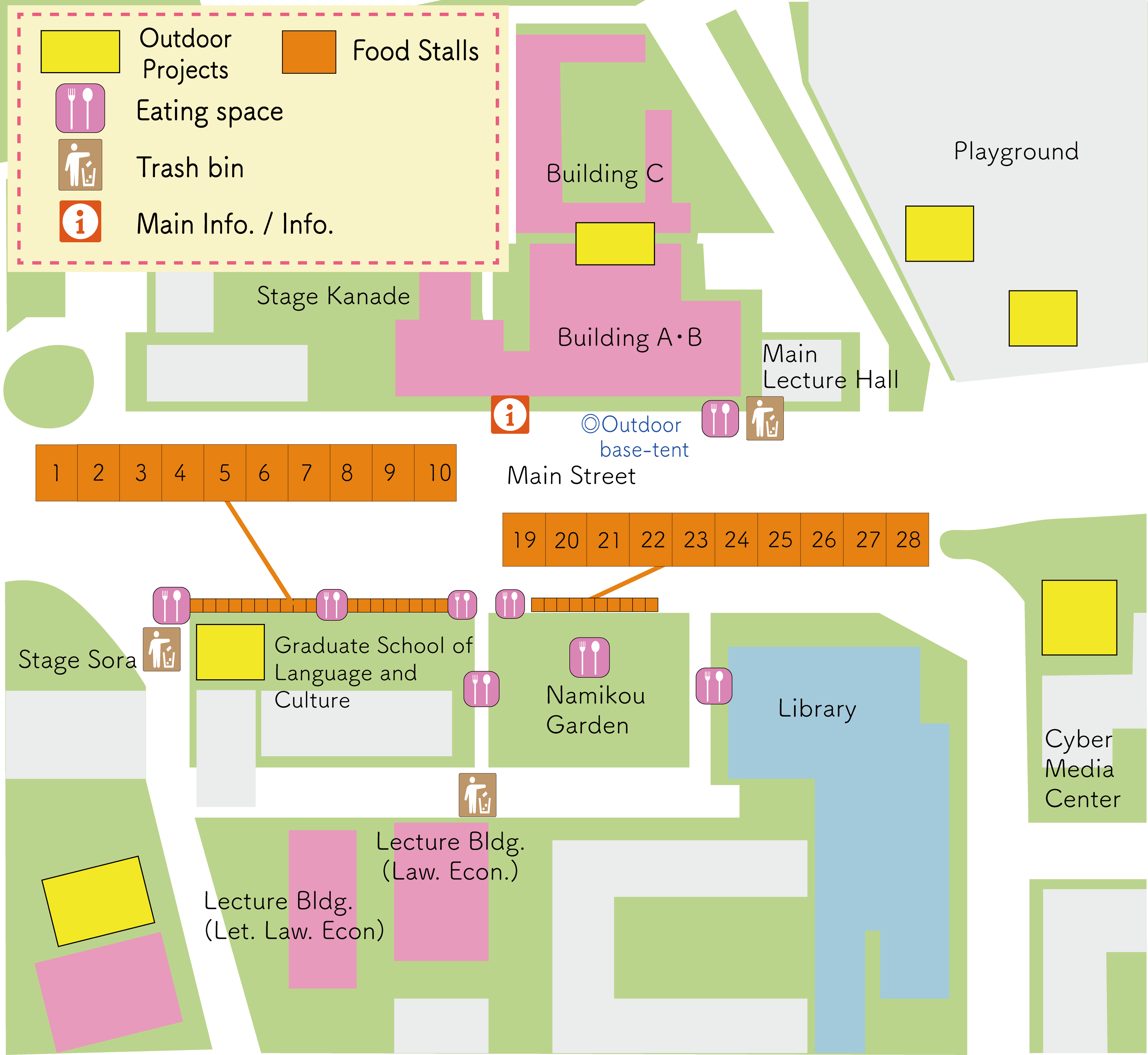 ※Trash bins are located in each floor of CELAS, ground floor of Lecture Bldg.(Law. Econ.) and (Let. Law. Econ.)
